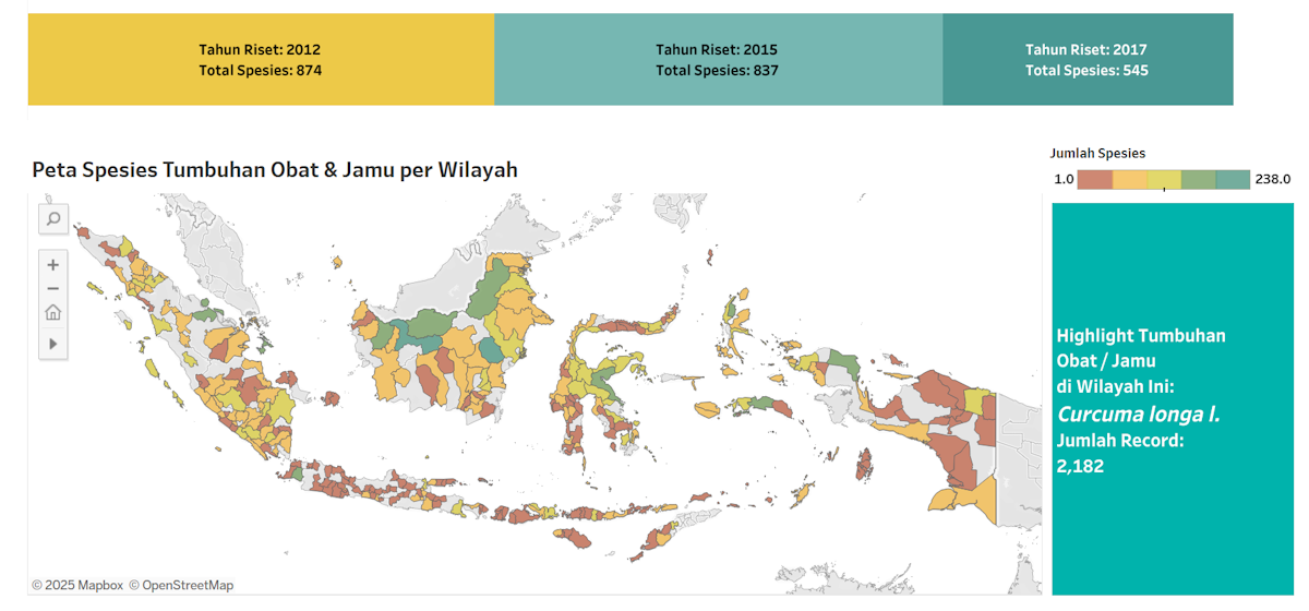 Riset Tumbuhan Obat dan Jamu (Ristoja) Kementerian Kesehatan sudah mendokumentasikan ribuan jenis tumbuhan obat yang digunakan oleh berbagai etnik, dari Sumatra hingga Papua. Namun, jika melihat data Gabungan Pengusaha Jamu dan Obat Tradisional Indonesia (GP Jamu), baru sekitar ratusan jenis tumbuhan yang digunakan sebagai bahan baku pembuatan jamu.